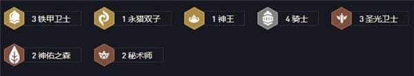 3铁甲卫士+1永猎双子+1神王+4骑士+3圣光卫士+2神佑之森+2秘术师