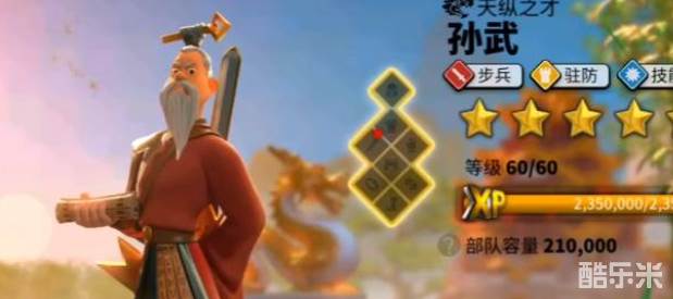 步兵、骑兵、弓兵和攻城四大兵种均有对应的英雄体系,例如孙武、理查一世代表步兵核心,源义经、曹操构成骑兵主力,李成桂、海尔曼则是弓兵代表。英雄获取途径包括金钥匙宝箱、最强执政官活动、远征商店兑换等,觉醒需消耗同名雕像或通用头像。