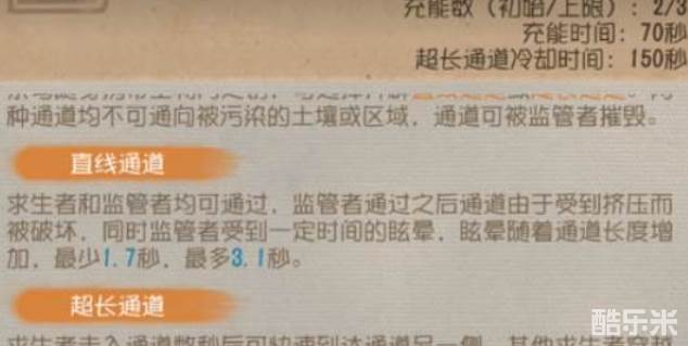 一种是普通的小洞,一种是冷却时间为一百五十秒的大洞。当祭司靠近建筑,并且屏幕面向建筑时,点按技能可以在建筑上打小洞,求生者和监管者都可以钻过小洞,后者钻洞会产生有一小段的控制。