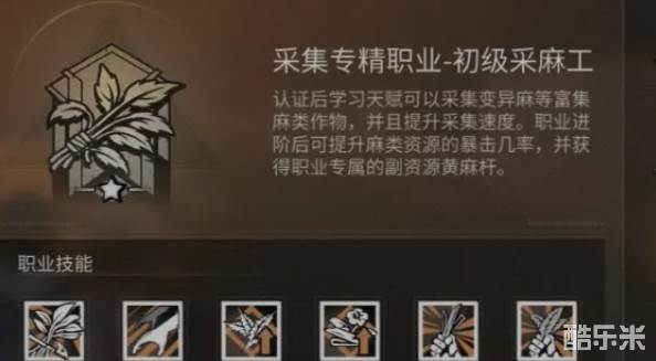 最后编辑于1个月前中级采麻职业技能将两个暴击全都点上,对虽然只有2.5%的提升,但是采的多了自然会触发的多,也是为了获取更多的资源。高级采麻技能中将黄麻杆和黄麻叶两个技能点满,这是该职业的专属资源,价值和需求都是很高的,也是用来出售的高级资源。下面和酷乐米小编一起来看看吧