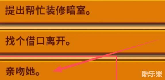 进入暗室后她会让你评价这个空间。这时候选看上去棒极了能加10点好感,如果选我见过更棒的会直接扣50好感,千万别手滑。接着她会问你想做什么,这里有两个分支选择:选帮你装饰这间暗室会消耗木材和石头材料,需要找罗宾帮忙装修,完成后暗室会变宽敞美观,同时提升3星左右好感度。