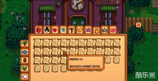 星露谷物语秘密纸条14的内容非常简单直接,去社区中心背面找东西。这张纸条没有复杂的谜题,只是提示在社区中心后面藏了物品,而且不是NPC的剧情或爱好相关。拿到纸条后,第一时间就可以去探索,不需要额外条件。先走到社区中心背面,靠近墙壁的位置。下面和酷乐米小编一起来看看吧