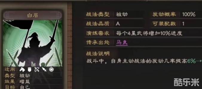 白眉战法是关羽的必备选择,12%的主动战法发动率加成能有效缓解其技能触发难题,而第二个战法槽位推荐搭配横扫千军,该技能不仅能补充群体伤害,还能与威震华夏的控制效果联动触发震慑,形成压制链。若缺乏横扫千军,纵兵劫掠可作为平替方案,虽为单体伤害但同样具备震慑触发机制。