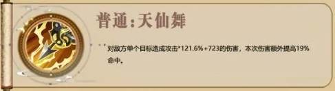 对敌方单个目标造成攻击*121.6%+723的伤害,本次伤害额外提高19%命中。