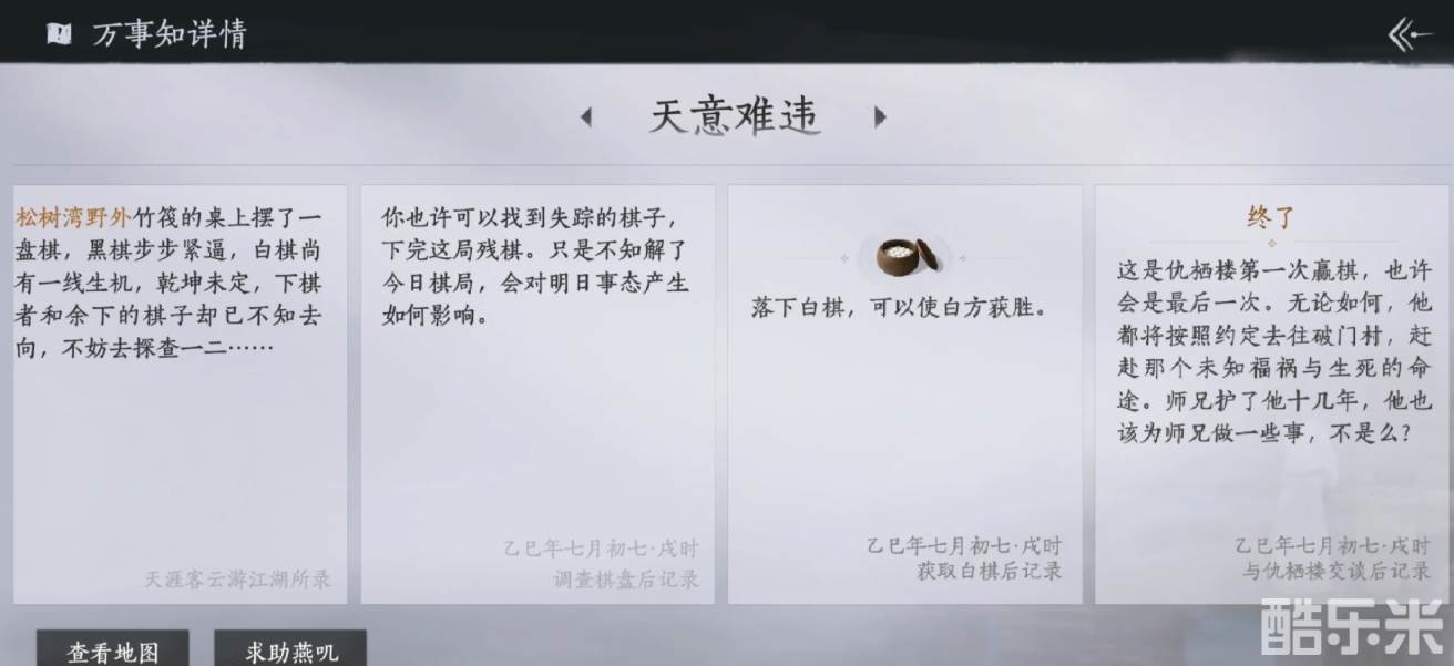 结局1:随后仇栖楼会前往破门村奔赴未知之约。接着带上黑棋去到仇栖楼之处,再次对话即可解锁