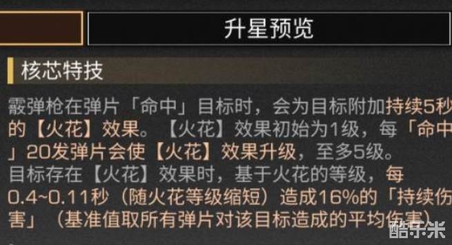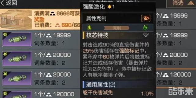 触发强酸标记,那里面存着的伤害都会被清空。命中被标记的敌怪之时,有百分之二的几率进行一枚子弹的装填。升到黄5后,可在触发强酸标记时立刻重置并附加十层计数。黄9则能在触发标记后,给对面敌怪挂上五秒的腐蚀负面。