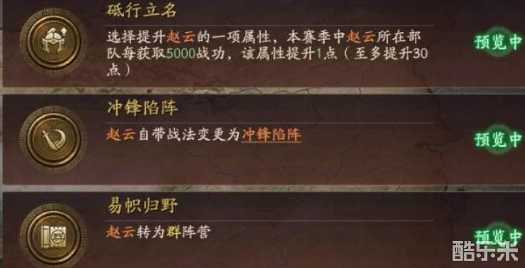 三国志战略版赵云带当锋、速乘,兵书带乐善好施、久战、励军并装备灵动、踩踏。关银屏可用草船、临危,兵书带疾战、百战、速战并装配灵动、踩踏、刚体。配速的时候将关银屏配成1速,比赵云快1点就行。至于双龙枪的治军整备,给赵云用上冲锋陷阵和砥行立名即可。双龙枪有了诸葛亮之后,对上法关、周瑜和五谋都会有天然优势。它比较适合SP关羽和SP马超不红的人,配将前先备好三个经验置换书。下面和酷乐米小编一起来看看吧