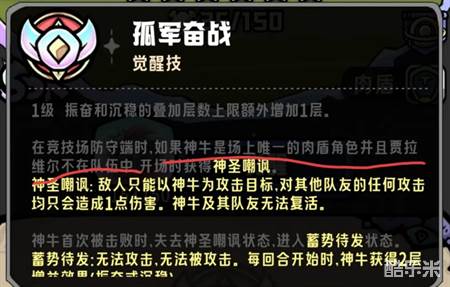 防守端的牛,不能和肉盾,不能和贾拉维尔,大刀两基佬一队(大刀应该是文案漏写了),同队会丢失神圣嘲讽