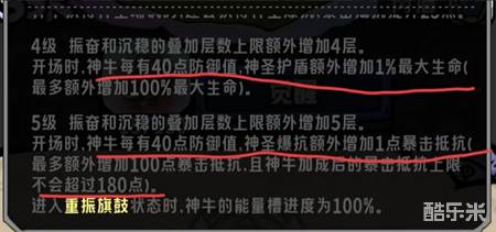 觉醒五的牛堆4000防以后,在防守端神圣嘲讽下会增加100抗暴和100血,4k防要等版本更新才能达到
