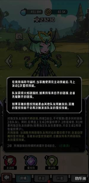 菲雅的星纹技在链子存在的情况下,消除绿色或者链接队友的颜色,菲雅都会发动星纹,每次星纹回复1点能量