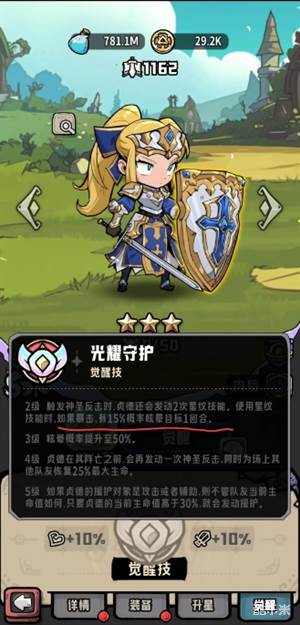 4、从一代的薇薇奶奶返老还童到二代的少女贞德,这是练了天山童老的不老长春功吗?作为一个只有防御能力的肉盾,前期超弱后期超神就是她的标签,可以称为整个游戏最硬的肉