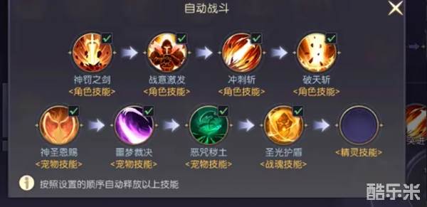 首先我们要知道技能自动释放的顺序是从第一排的第一个到第一排最后一个,然后转头释放第二排第一个技能到最后一个。有些被动打架的活动,比如矿车和祈福,都是别人来打设置好了的自己,那么这些时候就比较考量我们的技能摆放顺序是否合理。
