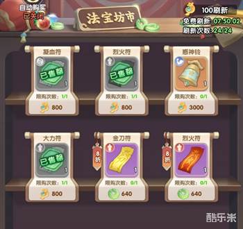 法宝坊市:新区,前面拿器令不多,不要什么都买,刷几个有用的升星,玄品中几个神器:青红**输出、阴魔鼓(追击流必备)、金烟伞(刚刚修复,抵挡所有控制,晕,沉默,惑乱,假死等)黑石印(也可以拿)