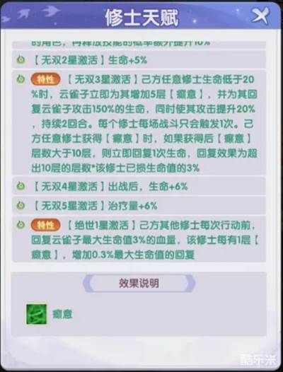 云雀子在仙逆H5游戏中被定位为辅助角色,拥有超强的连续群体治疗能力和回怒能力。他不仅能提高队友的输出能力,还能保障队伍的续航能力,是新老手玩家必备的核心修士,以下是云雀子的养成攻略分享。