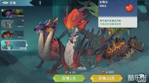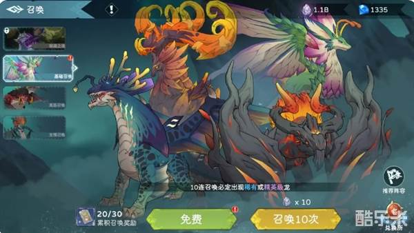 保底机制:10连召唤必定出现1名稀有或精英级龙(SSR)