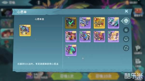 ①心愿单:在「高级召唤」中,驯龙师大人可以将您的梦中情龙放在心愿单里,它出现的概率会大大大大提升!