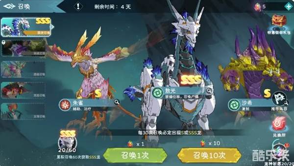 ③累积召唤有大奖:在「限定召唤」中,召唤达到60次,可以额外获得“累计召唤奖励”,SSS级龙;