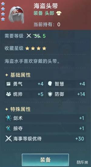 海盗头带,虽然技能和炮船没有任何关系,但是因为他5级就能穿,而且本身就是4星,属性很高,所以推荐购买。