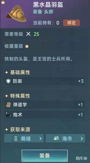 黑水晶羽盔,作为第一个和炮船有关的头部装备,当然是所有零氪炮战玩家的首选。但是因为过度装备,所以没有必要合成4星。