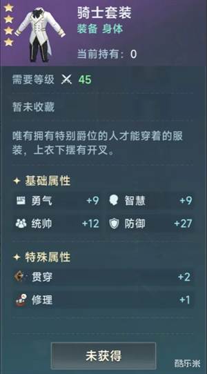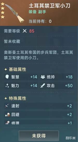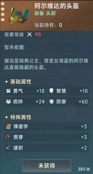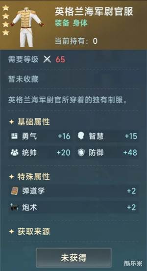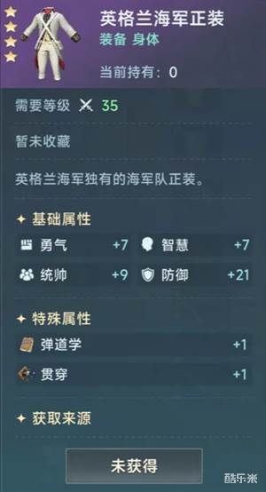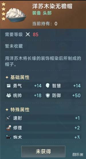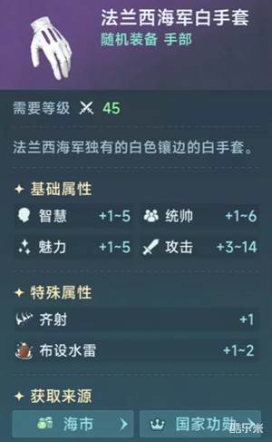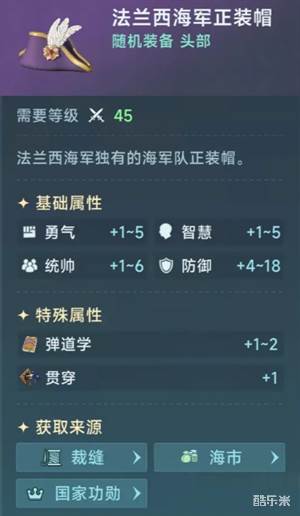 海军正装官帽,是黑水晶羽盔的替代品,各国首都裁缝都可以直接购买,获取难度很低,但是同样作为过度装备,所以合成升星会很浪费,所以不推荐合成。