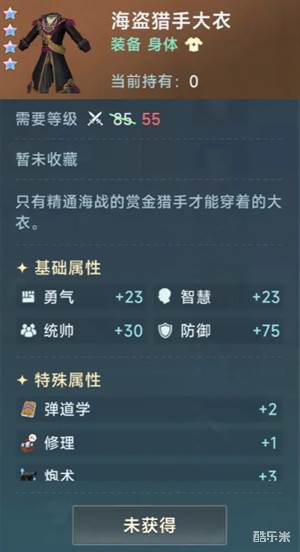 海军三角帽,又是一个商城的炮船装备,购买就是3星,属性加成接近4星的65装备,技能也都是所需要的,如果是氪金玩家值得购买。