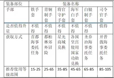 手部几乎没有可以选择的地方,除了按部就班的更换,顶多就是多了一个是否购买商城手套而已,由于中间空档期较长,将官守护手套还是值得购买的。可以平稳过度到后期。