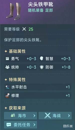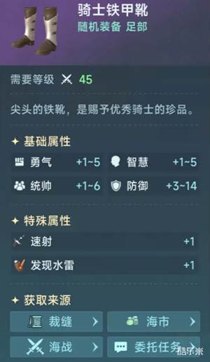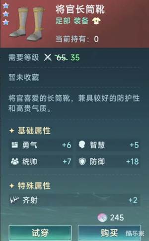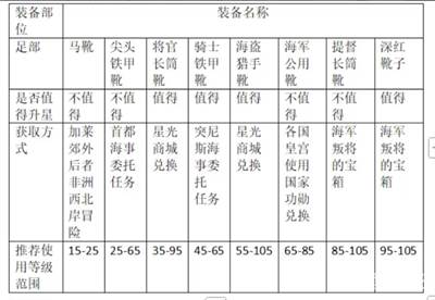 足部装备比较复杂,高等级足部装备获取难度都非常大,海军公用靴要国家等级3级才能兑换。提督长筒靴,深红靴子这两种更是需要冒险藏宝图才有几率开出,概率非常的低。所以骑士铁甲靴这个本来应该是过度装的装备,也有了值得升星的必要,而将官长筒靴更是性价比超高,完全可以用到深红靴子3星。