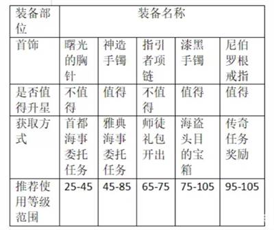 对于大部分玩家而言神造手镯就是毕业装备了,所以非常值得升星,指引者项链师徒礼包才能开出来,想要获得一个都很困难,更别说16个了。漆黑手镯同理,冒险宝箱获得,几率太低了。尼伯罗根戒指作为传奇任务奖励,也是很难获得的。