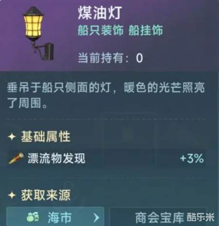 煤油灯,配合图书室间接增加我们获得藏宝图碎片概率。