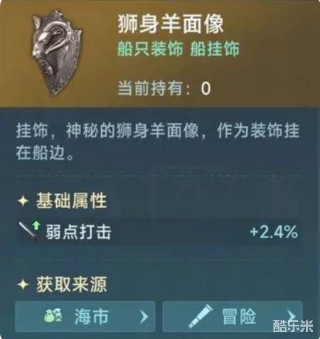 狮身羊面像,可以增加我们陆地探险暴击伤害。