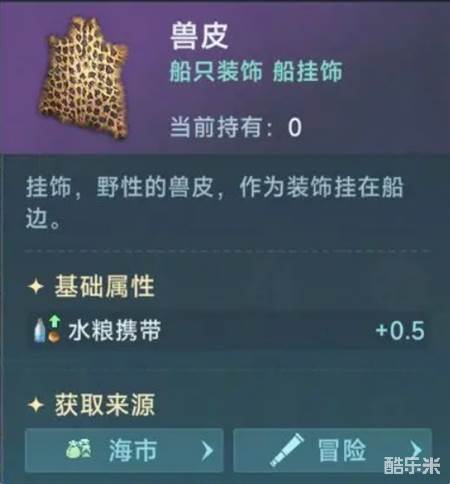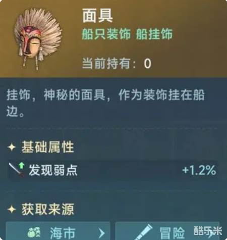 由于冒险的船装饰各式各样且对冒险探险都有不同作用,在这里简单列一下,让各位船长都对这些有个了解以后好针对性来用。