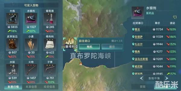 需要注意的是,地图上显示的出售价格是没有扣除税的,所以大家在考虑利润时还需要观察一下对应港口的税。
