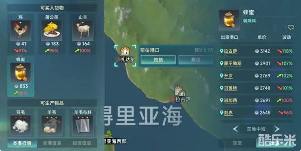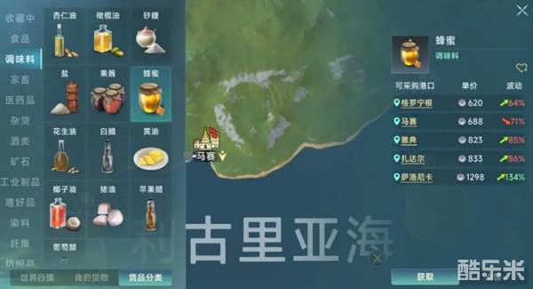 蜂蜜只要获取港口是格罗宁根,马赛,扎达尔。这三个也是我这次攻略重点推荐的起始点,再贩卖完第一船货物后可以直接使用拖航券来到这三个港口中的一个开始进货。配合拖航券来跑可以节省返程时间。
