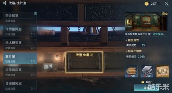 (三) 在船舱改建主计室,并且招募格罗宁根的会计航海士提升到60级,或者更高。