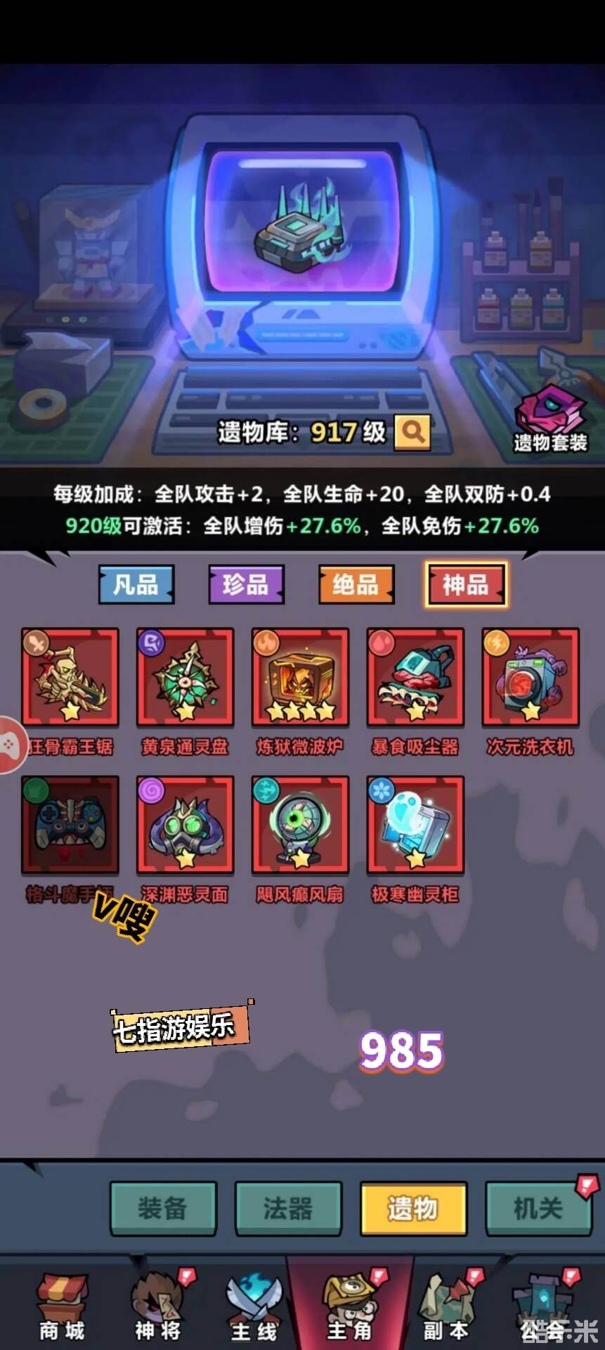 输出神将:T0级有阎罗王、地藏王,T1级有燃灯佛、盘古。