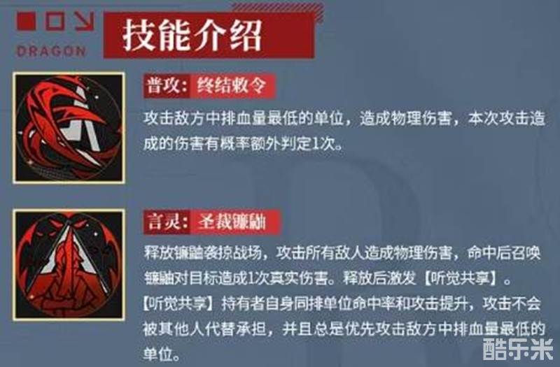 龙族卡塞尔之门影镰恺撒即将上线,不少玩家在问龙族卡塞尔之门影镰恺撒技能是什么?下面和酷乐米小编一起来看看吧