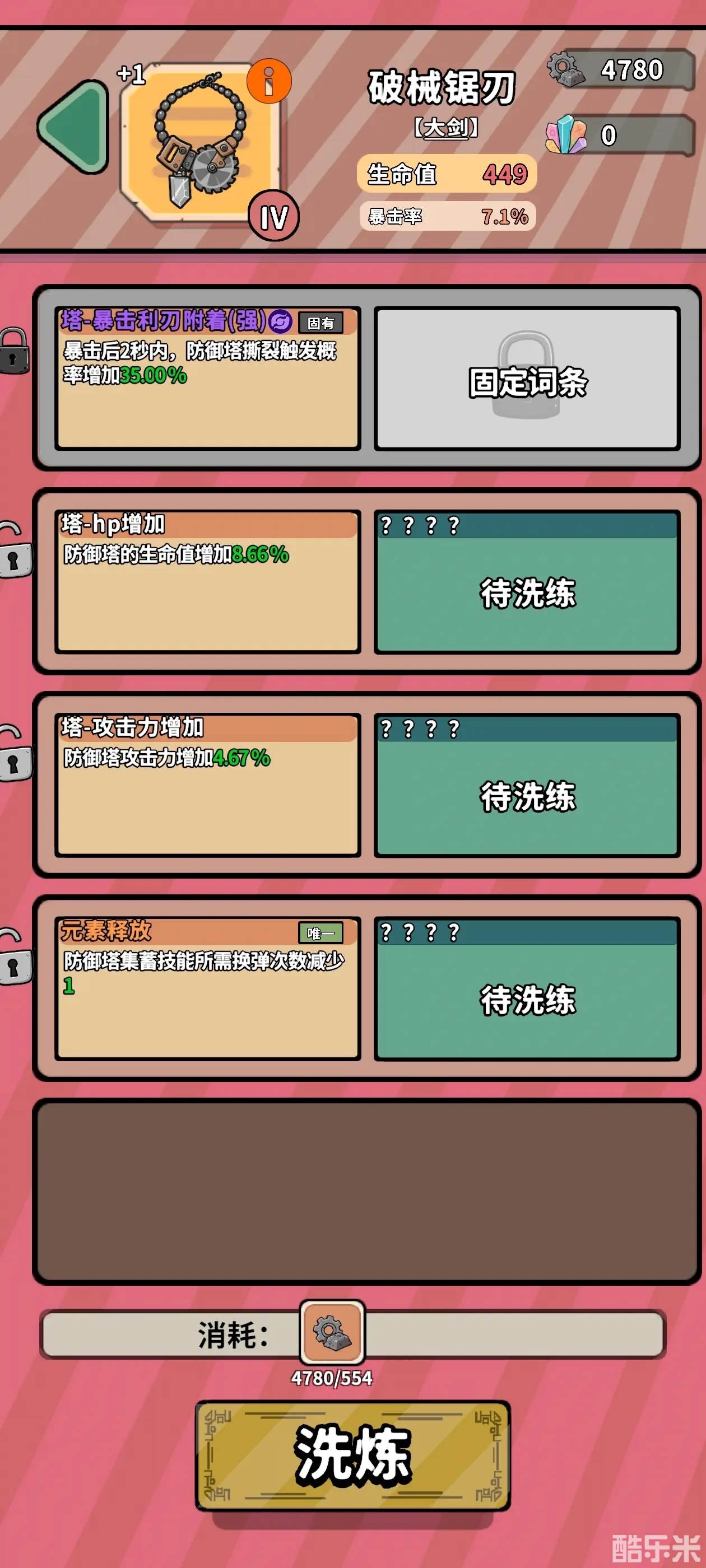 这就需要游戏里最稀有的东西,锁定石出场了,没错那个彩色的石头正是能够在你刷新时保留你想保留的重要词条,从而刷新其他废词条的神器,非常的珍贵,在秘境,爬塔,无尽中都有极小概率掉落,爬塔和无尽大宝箱里也能兑换哦,最直接的就是钻石买了,锁定一个词条每刷一次消耗一个锁定石,两个词条一次需要三个锁定石,锁的越多一次刷新消耗越多,毕竟对战力影响太大了。