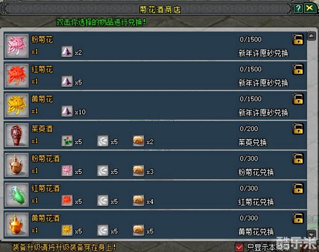 共饮菊花酒:闯副本集糯米、茱萸,换各式美酒,饮美酒得脉气、坐骑券、龙隐石!