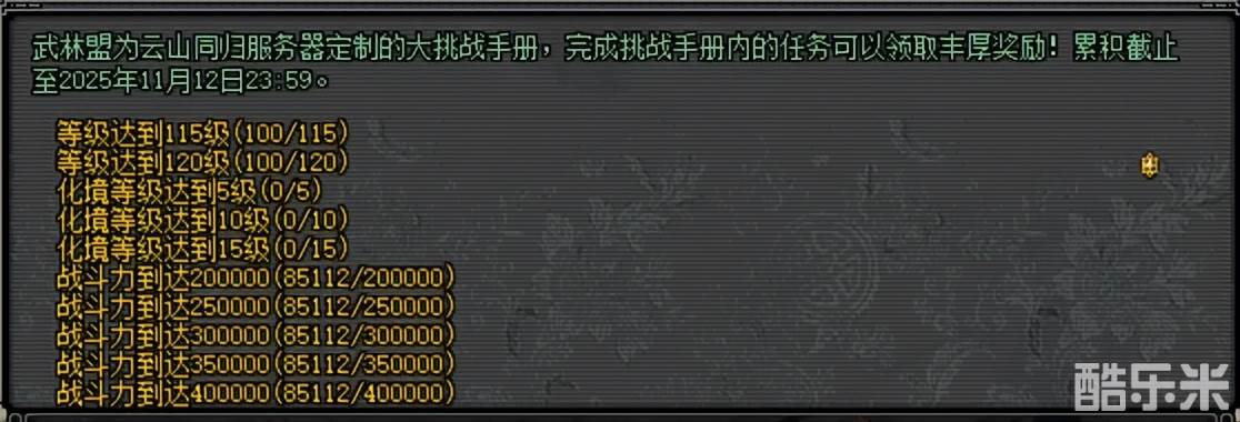 云山同归:新服专属挑战手册,活动时间完成挑战可领六星战印、大真武魂石!