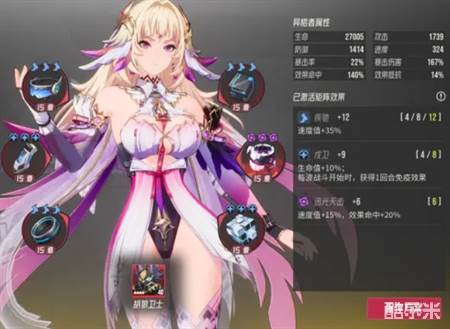 右三主属性,我推荐2命中效果+1生命加成,保证技能附加上debuff的情况下增加一点生存能力,下面是芙蕾雅的属性参考: