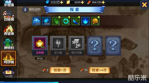探索消耗:探索1次=体力*2