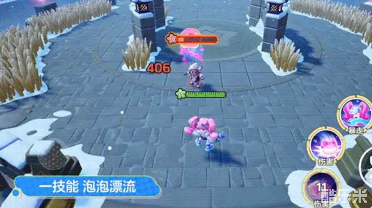 1技能“泡泡漂流”,发射一颗大泡泡,向指定方向飞行一段时间后返回身边,对命中的目标造成伤害和减速效果。2技能“呱呱糖爆弹”,扔出可爱的青蛙糖果包,碰到敌方目标会发生爆炸,若未碰到目标,糖果包则会在存在一段时间后爆炸;