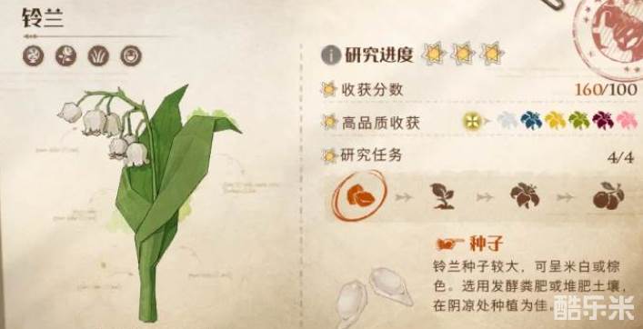 哈利波特魔法觉醒植物研究点完后收获六种不同颜色高品质植株就行,有可能的话顺便点点“收获的喜悦”。下面和酷乐米小编一起来看看吧