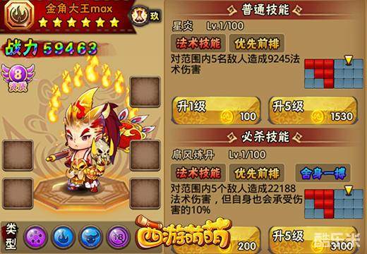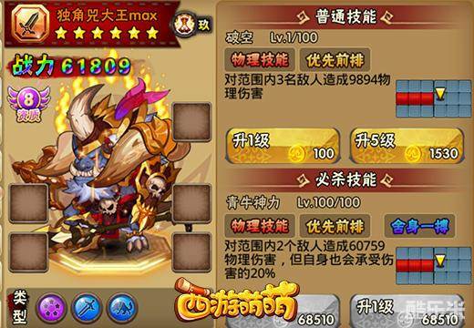 还有独角兕大王,别看他只能攻击自己前面三个格子的敌人,而且最多只能同时对两个敌人造成伤害。但是必杀技能一旦出手,就会对敌人造成数万的伤害值哦!