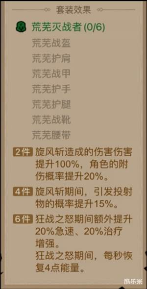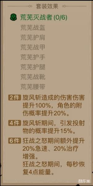 荒芜灭战者六件套:增强荆棘旋风斩。