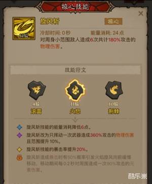 烈焰旋风斩适合推图和群战,依靠暴击引爆火焰旋风,对大范围敌人造成巨额AOE伤害。