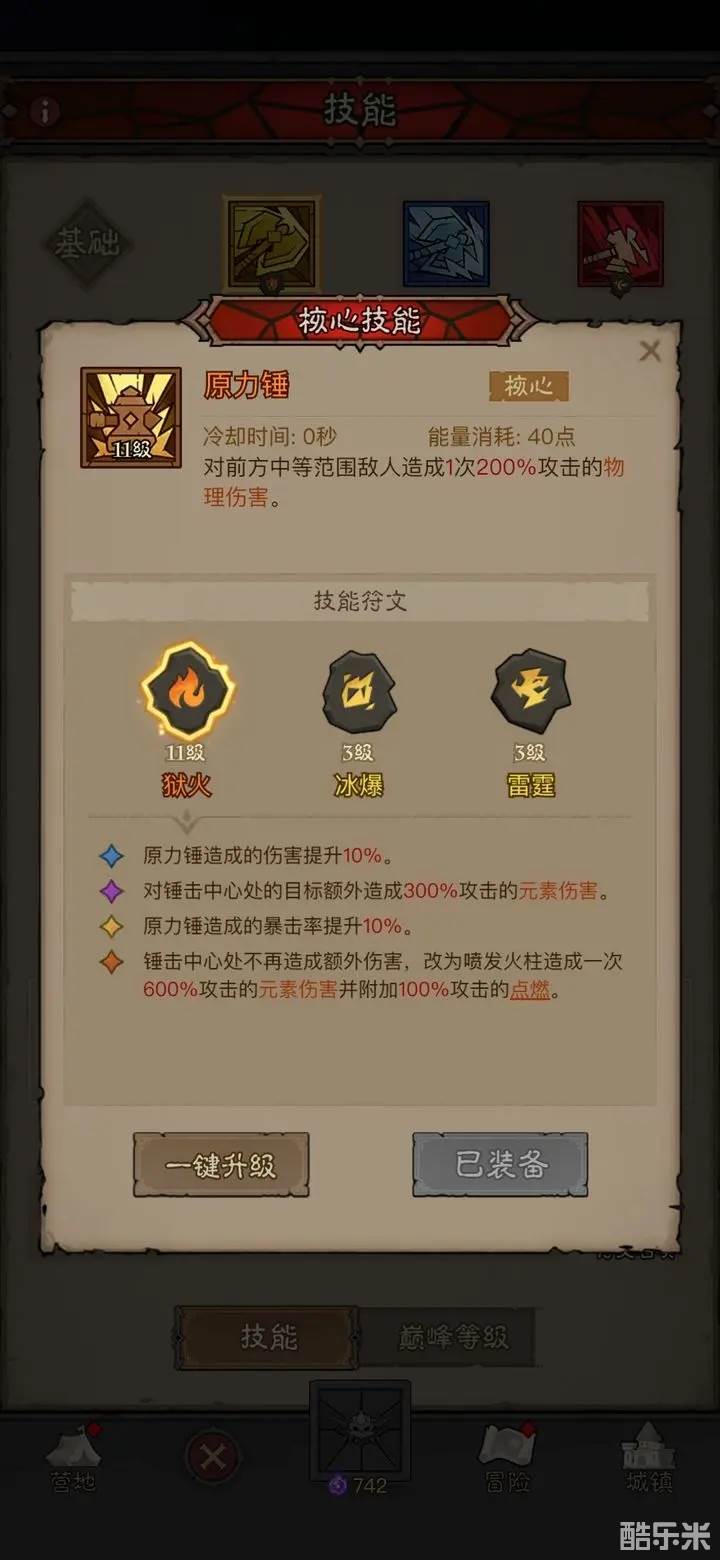 火锤其实就是原力锤的一个对应的核心的,其中是会带有一个狱火的一个技能,这个技能是火锤的一个关键,其中是会附带一个点燃的效果,并且各种伤害等等的提升,还是会有喷发火柱造成一个比较高的一个伤害的一个能力的。