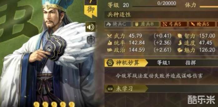 三国志战略版自带战法神机妙算能打断敌方的主动技能并造成伤害,特别适合作为主将使用,这样伤害还能基于智力差额外提升,帮你有效克制依赖主动战法的对手。他的统率成长也很出色,让他在战场上既能打又能抗,绝对是阵容中的关键角色。兵种适性上,弓兵、枪兵和器械都是顶级选择,我们推荐优先考虑弓兵或枪兵,这样能最大化他的控制与输出优势,下面和酷乐米小编一起来看看吧