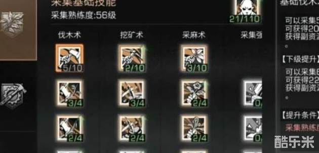 明日之后斧头基础伐木术等级直接影响采集暴击率,例如铁斧可提供6%主资源暴击率。通过镶嵌宝石或升级配件可增强属性,但玩家反馈合成高阶配件成功率极低,建议优先提升制作台等级以提高成功概率。下面和酷乐米小编一起来看看吧