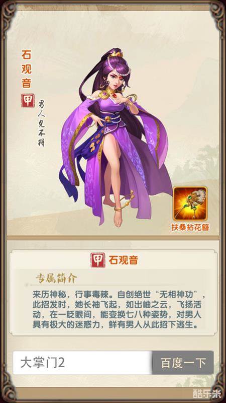 石观音之所以惧怕水母阴姬,并非因为后者比她更美。单轮相貌,十个水母阴姬也是不及她的,但后者性格怪异,不辨是非、不分善恶,且武功无人能敌,故此让人望而生畏。《大掌门2》将这两位同样武功卓绝、形象出众的女中豪杰以合璧武功的方式结合在一起,实在很难想象如此二人联手的威力到底还有谁可以抵挡,恐怕只有等各位掌门在游戏中破解之后方能知晓了。